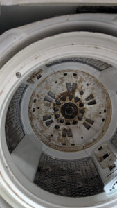 福岡県大牟田市内で縦型洗濯機のクリーニングを実施させて頂きました。